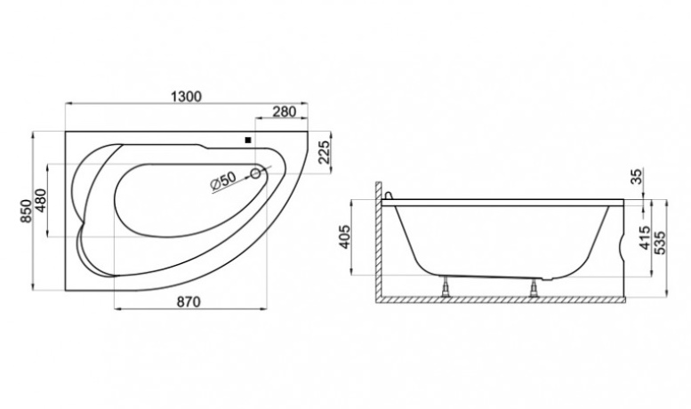 Угловая Акриловая ванна STANDARD 1300*850 мм R (плюс крепления). Преимущество акриловой ванны STANDARD заключается в ее стабильной и прочной конструкции, идеальном балансе угловой ванны благодаря собственной выравнивающей раме и внешней форме асимметричной ванны , которая обеспечивает экономичное расположение поверхности любой ванной комнаты.