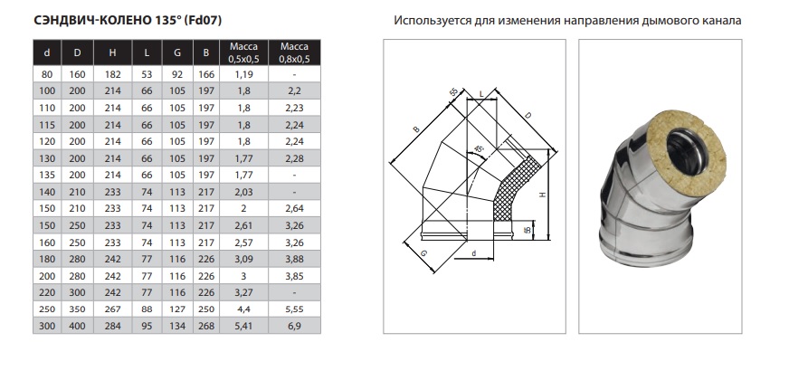 Утепленный дымоходный Угол FERRUM Ø 150-210 135° (430/0,8 mm) Двустенный дымоход или сэндвич представляет собой конструкцию, состоящую из двух труб разного диаметра (внешней и внутренней). Пространство между этими трубами заполнено теплоизоляционным материалом негорючего свойства. Наполнитель состоит из базальтового волокна высокого качества. Такая конструкция способствует быстрому нагреву внутренней трубы. За короткий промежуток времени после старта температура в дымоходе поднимается выше «точки росы», и это помогает избежать образование конденсата.