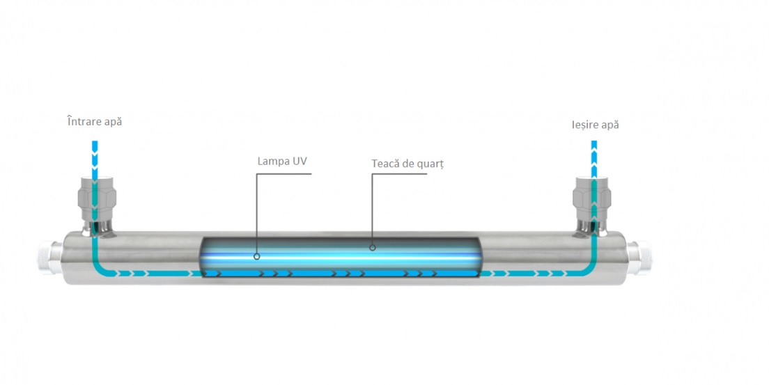 УЛЬТРАФИОЛЕТОВЫЙ ОБЕЗЗАРАЖИВАТЕЛЬ ВОДЫ ECOSOFT E480 Вода подается в корпус ультрафиолетового обеззараживателя, где, собственно, и происходит обезвреживание микроорганизмов. Входящий поток воды омывает кварцевый чехол и получает необходимую дозу ультрафиолетового облучения. Кварцевый рукав вокруг лампы предотвращает попадание воды в корпус самого излучателя, обеспечивая безопасность системы.