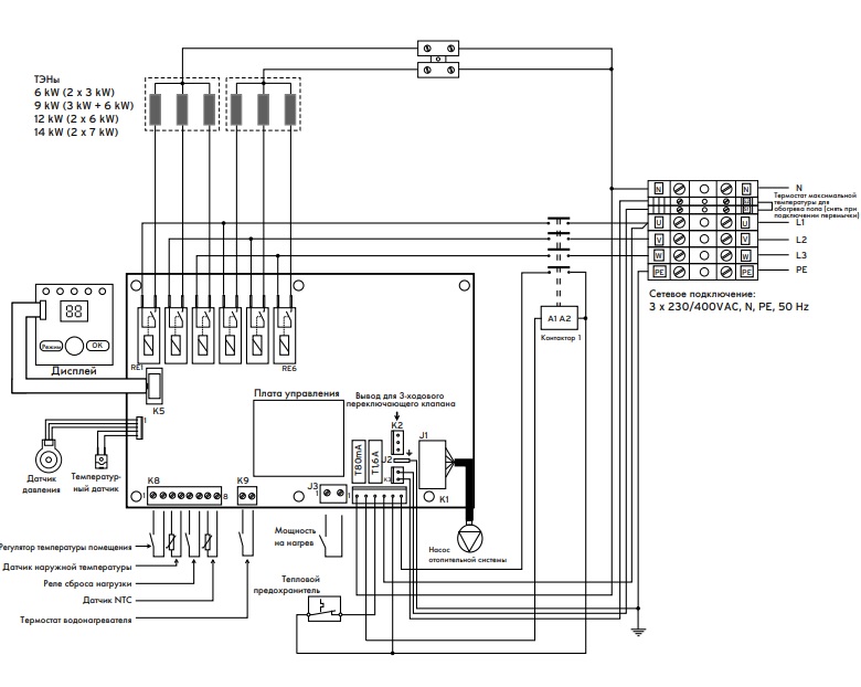 • Котел может быть подключен к однофазному источнику электроэнергии (220 В).