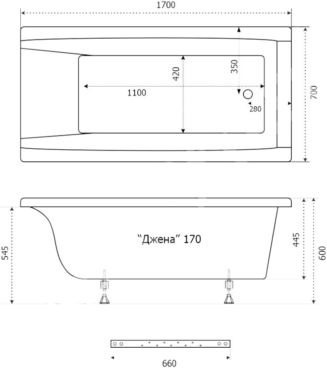 Акриловая ванна Triton Джена 1700*700 mm (в комплект входит акриловая ванна Джена + Экран лицевой Джена, Карниз) Прямоугольная ванна Triton «Джена» отличается безупречной эргономикой и четкими линиями. Для производства выбран акрил, который сохраняет белизну и эстетичность в течение всего срока эксплуатации. Компактность модели не мешает с комфортом принять ванну. Максимально удобное расположение достигается за счет выпуклой анатомической спинки с плавным изголовьем.