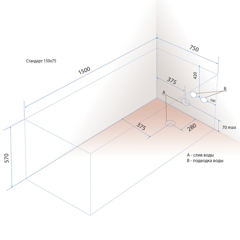 Акриловая ванна Triton Стандарт 1500*750 mm (в комплект входит акриловая ванна Стандарт + Экран лицевой Стандарт, Карниз) Классическим вариантом для оснащения ванной комнаты станет акриловая ванна Triton из серии «Стандарт». Чаша с удобным наклоном спинки дополнена подлокотниками. В целях безопасности дно имеет нескользящую фактуру. В комплекте поставляются слив-перелив и металлические ножки, легко регулируемые по высоте.