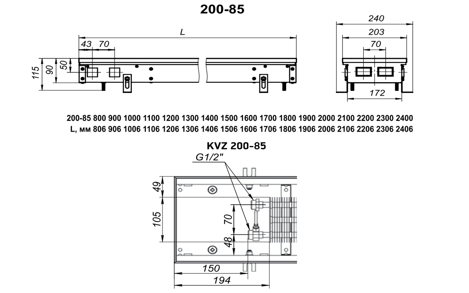 Встраиваемый конвектор Techno KVZ 200-85-1800/C (562 W) Цена указана только за конвектор, решетка для конвектора не входит в стоимость и подбирается отдельно по размеру и по цвету! Внутрипольный конвектор с естественной конвекции "Techno-Warm" с декоративной алюминиевой решеткой является идеальным вариантом для отопления помещений с популярным в современной архитектуре панорамным остеклением, при котором невозможно использовать классические настенные радиаторы.