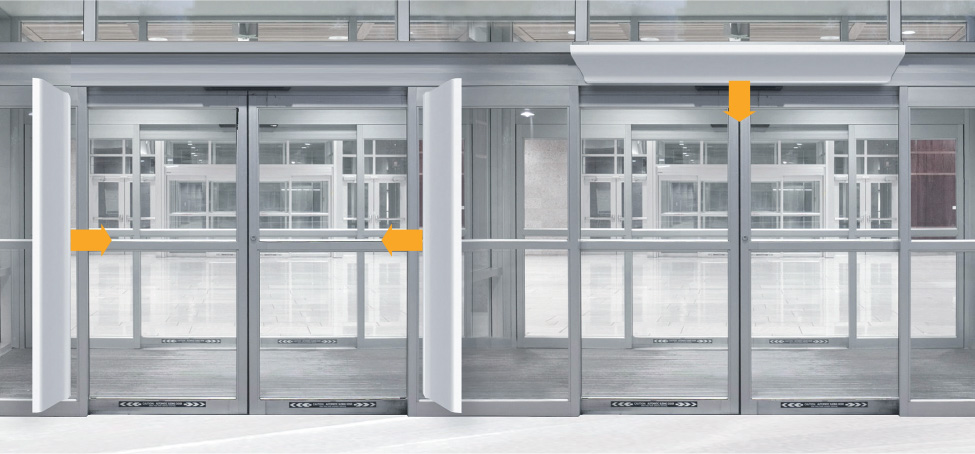 Воздушные завесы WING могут устанавливаться горизонтально или вертикально*. Благодаря обтекаемым формам, крайне небольшой высоте корпуса ​и наклонному впускному отверстию для воздуха их можно устанавливать в очень ограниченном пространстве над дверями без влияния на производительность.
