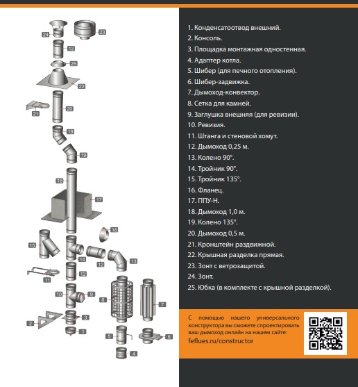 Заглушка внешняя FERRUM Ø 130 (430/0,5 mm) Одностенные дымоходы - это самое простое решение при сборке дымового канала, не требующее больших расходов. Дымоходная конструкция имеет стандартный набор различных элементов, при помощи которых можно собрать дымоотводящий канал практически любой сложности. Все элементы стыкуются между собой по раструбной системе соединения. Они могут использоваться при монтаже дымоходов в кирпичных каналах уже вошедших в эксплуатацию жилых зданий либо при монтаже каналов вентиляции. Одностенные дымоходы следует размещать только внутри отапливаемых помещений, при наружном размещении дымоходы следует теплоизолировать.