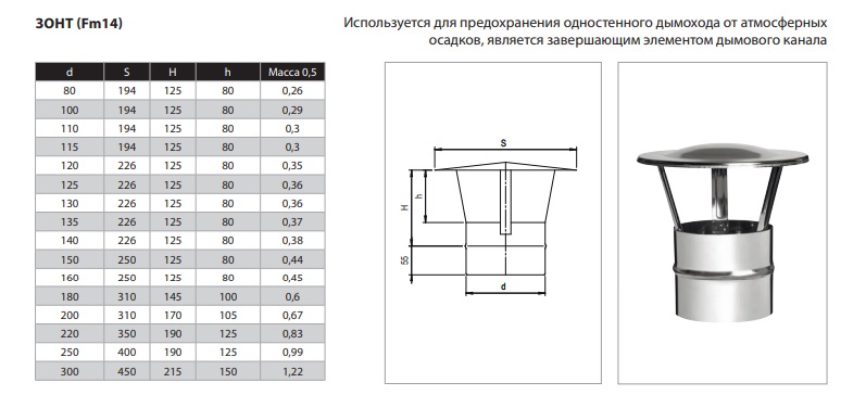 Зонт FERRUM Ø 180 (430/0,5 mm) Одностенные дымоходы - это самое простое решение при сборке дымового канала, не требующее больших расходов. Дымоходная конструкция имеет стандартный набор различных элементов, при помощи которых можно собрать дымоотводящий канал практически любой сложности. Все элементы стыкуются между собой по раструбной системе соединения. Они могут использоваться при монтаже дымоходов в кирпичных каналах уже вошедших в эксплуатацию жилых зданий либо при монтаже каналов вентиляции. Одностенные дымоходы следует размещать только внутри отапливаемых помещений, при наружном размещении дымоходы следует теплоизолировать.